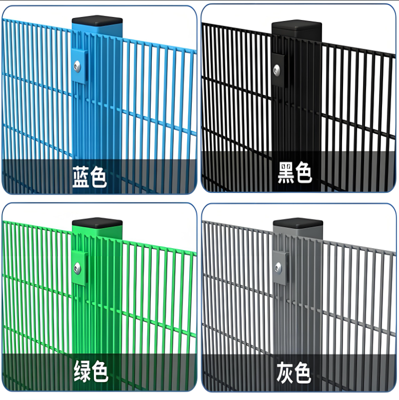 | 4x3mm 4x4mm 4.5x3mm 4.5x4.5mm | 76.2x12.7mm 75x12mm | 2m 2.2m 2.4m 3m | 1800mm | 4 | Green RAL 6005 Grey RAL 7016 Black RAL 9005 | 1. Hot-dipped galvanized after black wire welded 2. PVC coated after galvanized wire welded 3. PE coated after galvanized wire welded |