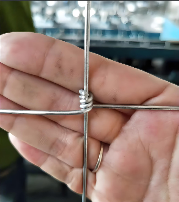 It has horizontal and vertical wires joined together with small knots, making this fencing